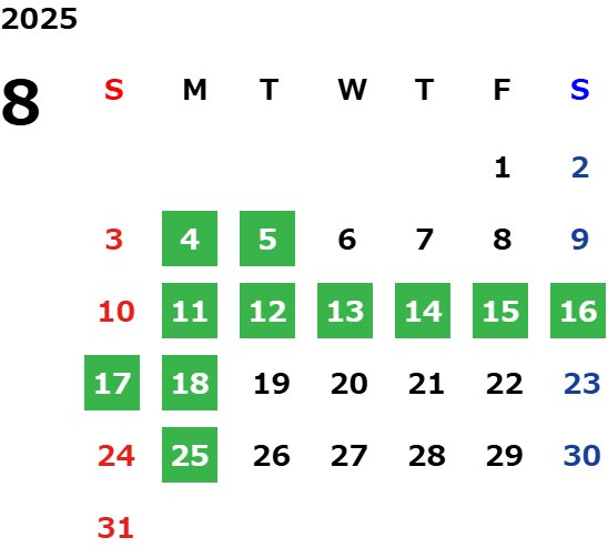 GW・お盆・年末年始